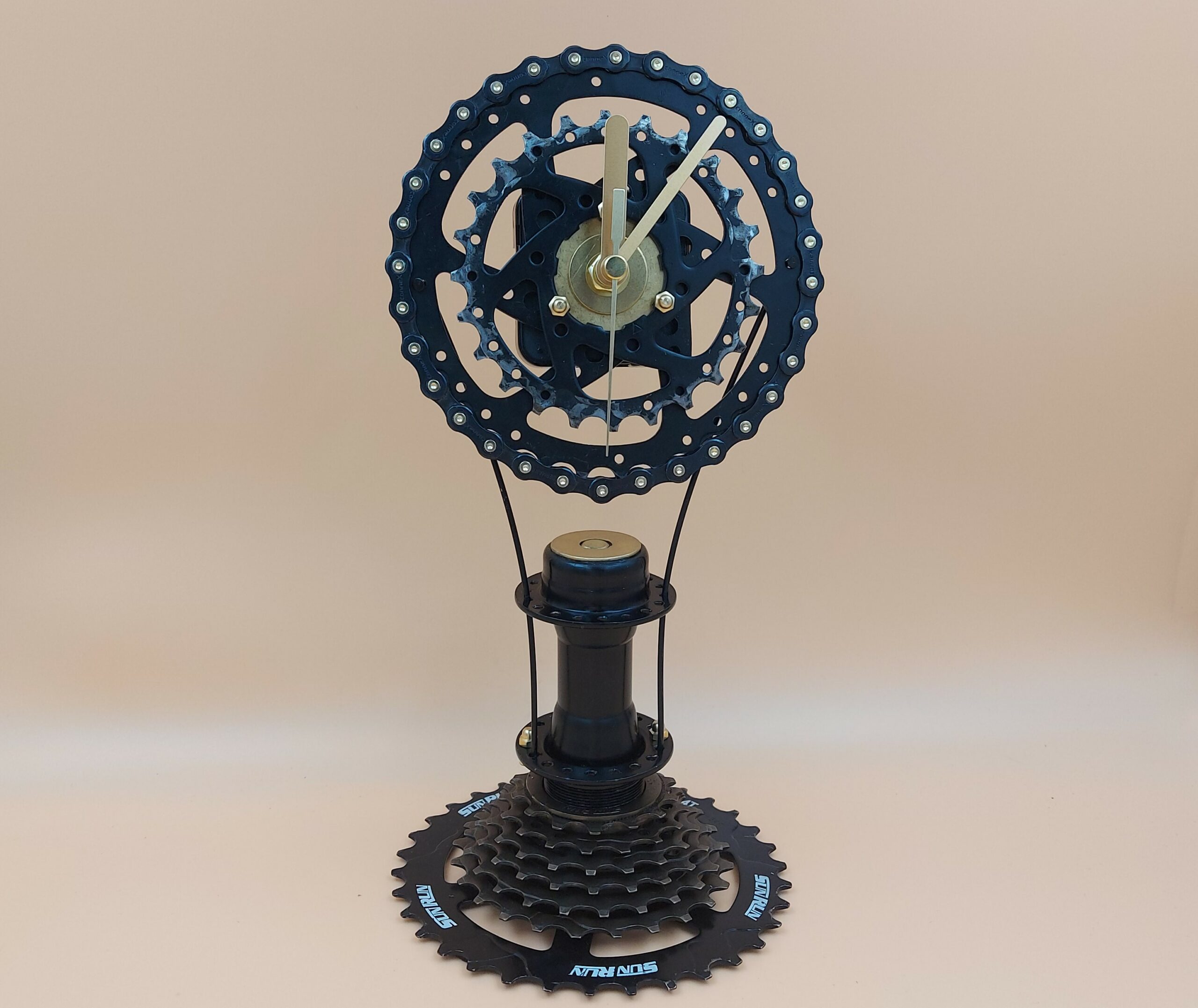 Aus alten, gebrauchten Gegenständen des täglichen Bedarfs – wie Flaschen, Holzkisten oder Fahrradteilen – plane und kreiere ich hochwertige und einzigartige Kunstunikate wie Uhren oder Möbelstücke.